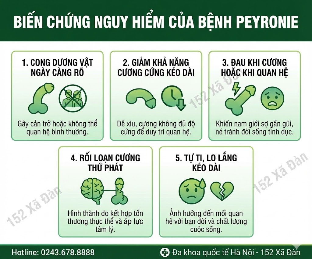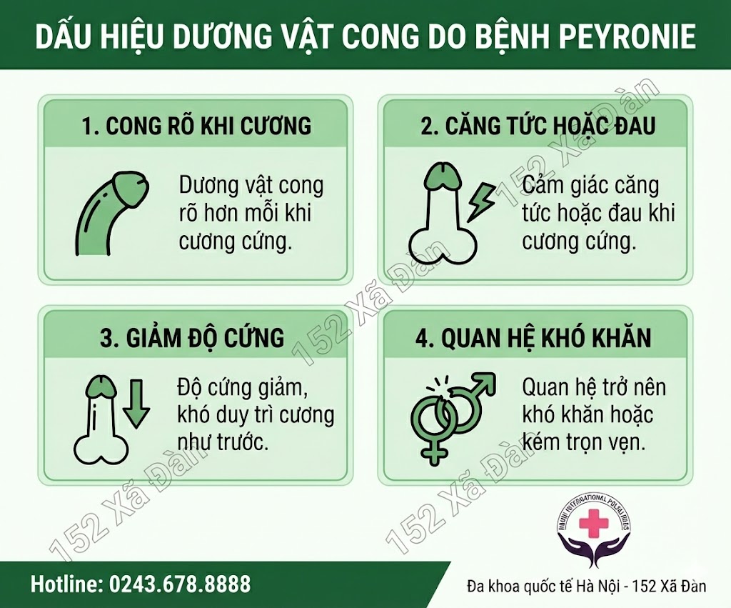 → Peyronie không chỉ làm thay đổi hình dạng dương vật, mà còn là một trong những nguyên nhân âm thầm dẫn đến rối loạn cương nếu không được phát hiện và kiểm soát kịp thời.