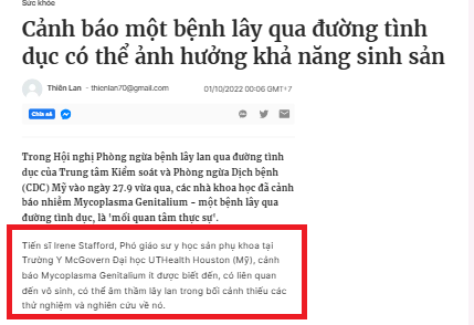 Nhiều nghiên cứu chỉ ra Mycoplasma Genitalium có khả năng gây vô sinh ở cả 2 giới