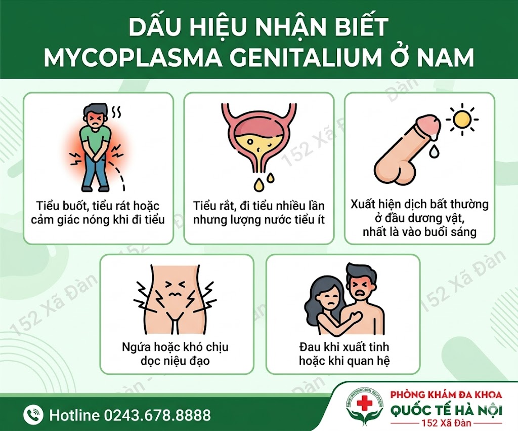 Nhiễm Mycoplasma genitalium thường không gây triệu chứng quá rầm rộ ở giai đoạn đầu. Tuy nhiên, cơ thể vẫn có thể xuất hiện một số dấu hiệu bất thường tại cơ quan sinh dục và đường tiết niệu.