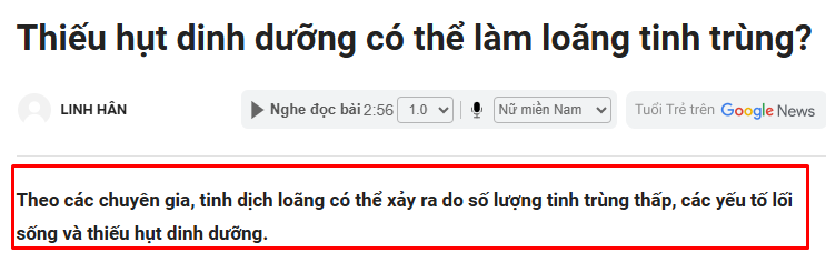 - Chế độ ăn uống thiếu kẽm, vitamin và vi chất cần thiết khiến tinh trùng yếu, ít và loãng hơn